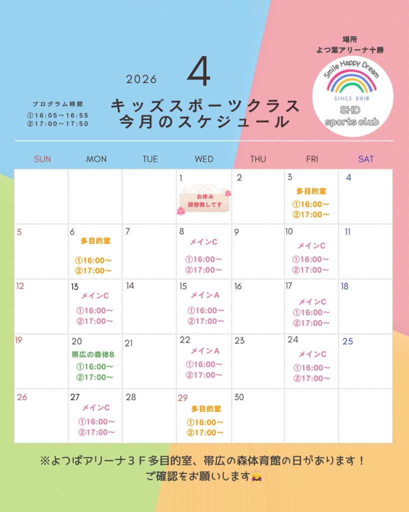 キッズスポーツクラスの4月スケジュールを更新しました!